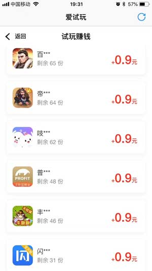 爱试玩,让你迷上手机挣钱,苹果手机试玩软件就赚钱的app,每日3分钟挣到一点点,试玩软件0.9元单价,10元起取现。中午4点每日任务数最多