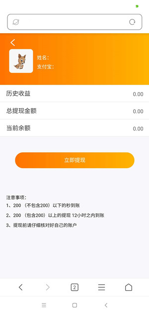 3、满20元之上取现到支付宝钱包,12小时内到账,取现服务费0.5%