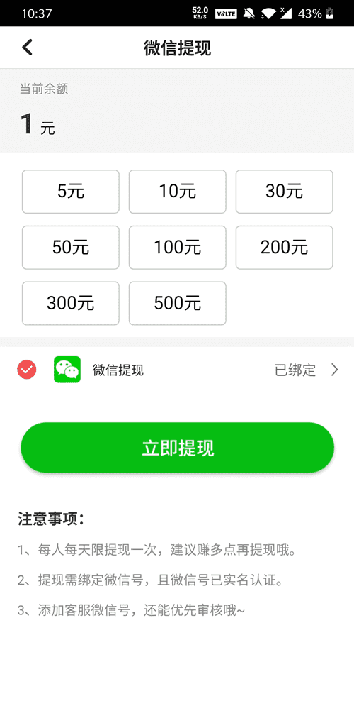 ③初次满五元可取现,事后十元起,最大适用一次五百元取现,当日平稳到账