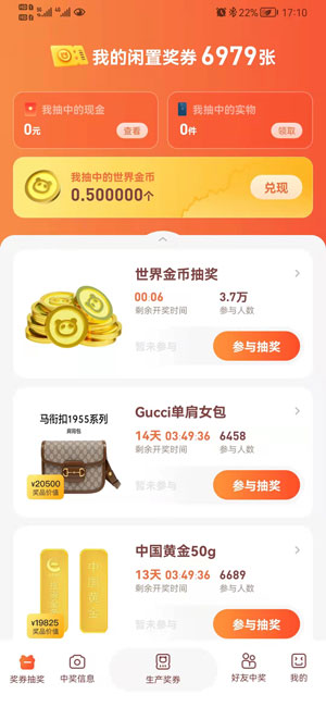 在奖券世界,以分红币为积分模式。持有分红币,就可以享受到奖券世界全平台的收入分红。持有的货币越多,时间越长,分红越高。当你有足够的奖券时,你可以报名参加抽奖。奖券越多,中奖概率越大。彩票开奖后可以查看,现金或实物奖励,各种数码奖等着你带回家!