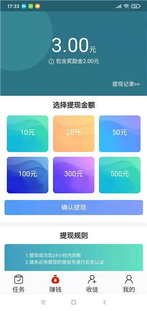 三、石石网满10元起提现至微信钱包,提现成功后24小时内到账,请务必实名验证提现的微信号。