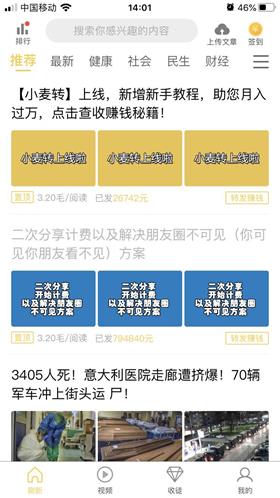 小麦转app,米转主打产品新发布转发挣钱软件,大平台团队运行,收益平稳。共享文章内容就能赚钱,能够挑选发至手机微信好友群或是转发到微信朋友圈,被好友阅读文章就可以得到收益。24小时全自动收费。价格0.32元/次,每天收益不设限制,永久性5元就可以取现。如今申请注册涨分很快,速率转起來!