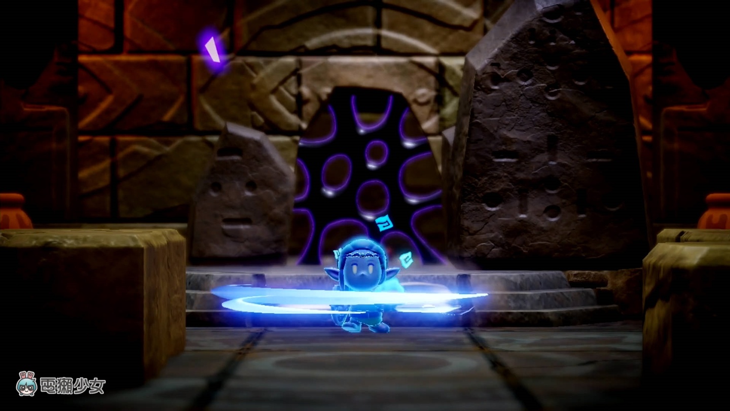至于官方PV最后才释出的变身「剑士」型态,则是通过打败复制林克后会拿到的「神奇之剑」来变身,能让公主拥有主动攻击的能力