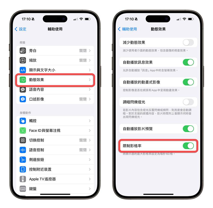 虽然iPhone 15 Pro采用自适应更新率,会依据需要调整更新率的高低,但也可以固定把更新率设为60Hz,减少高更新率造成的iPhone 15 Pro耗电状况。