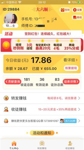 大六顺,大五福app,来源于抢先收同一主打产品精典转发赚钱网络平台,简洁明了分享文章内容就可以得到盈利,点一下价格高达0.6~0.8元,疯涨分,盈利快,发布至今褔利多,大红包多,奖赏大量,正进行12万元招徒现钱奖赏大赛主题活动(活动详情长达一个月)来钱超快,无需项目投资,零风险。想在网上找兼职赚钱就应当选这2款app哦!